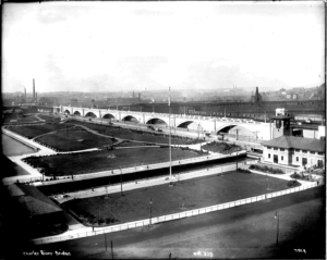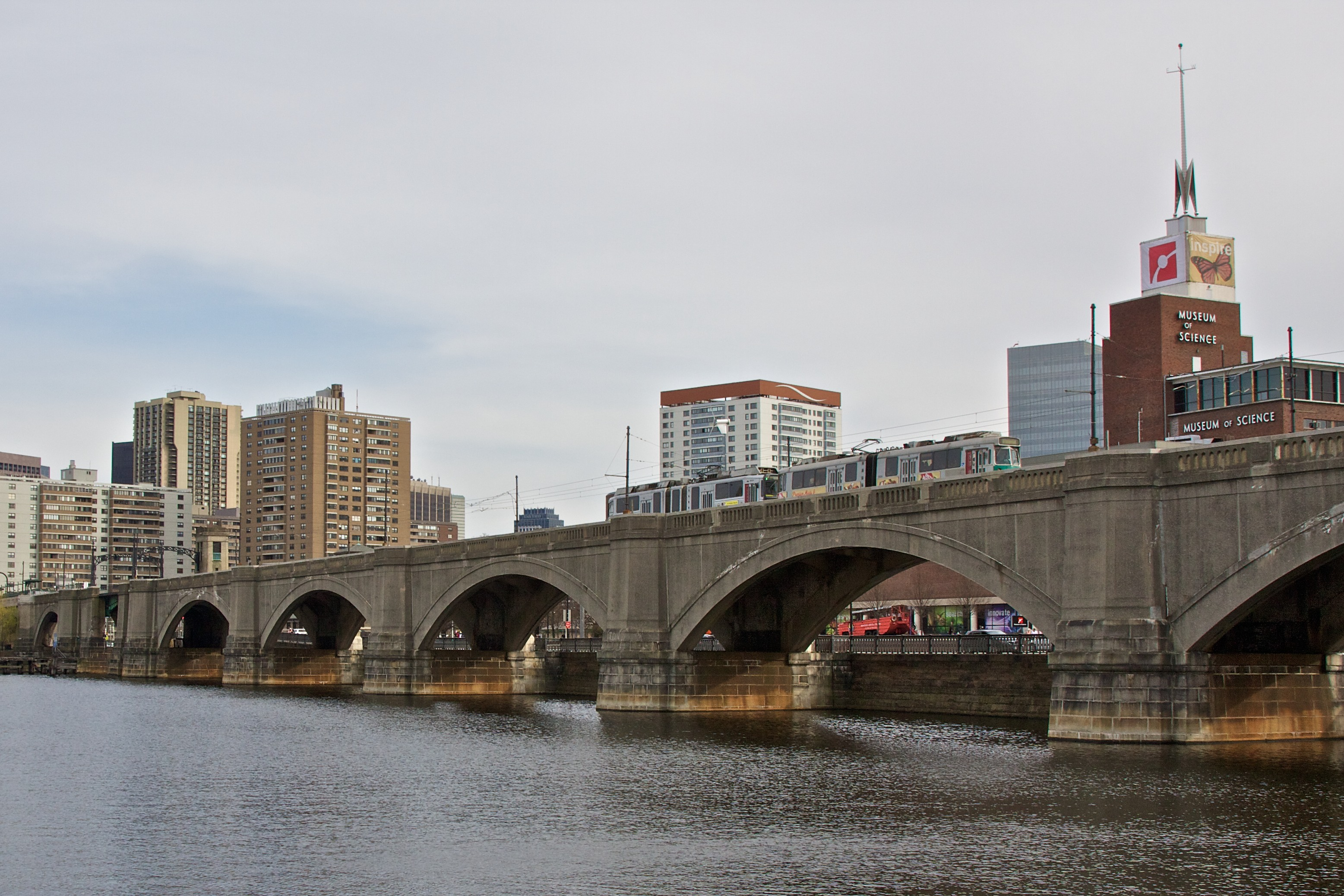Built in 1910, the Lechmere Viaduct is approximately 1,700’ long by 35’ wide — a series of eleven reinforced concrete arches and one steel bridge with masonry abutments. It carries the MBTA Green Line trains over the Charles River from Science Park station in Boston to Lechmere station and terminus in Cambridge. It was originally built to connect multiple streetcar lines in Cambridge and Somerville to Downtown Boston. At the time, it was the largest public works project in the region.