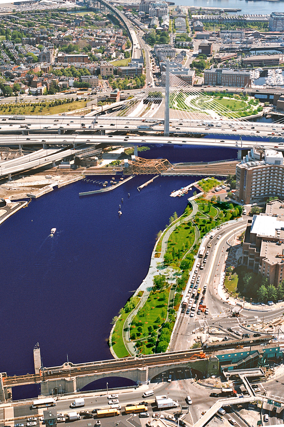 The banks of both sides of the Charles River between the Museum of Science and Boston Harbor were once heavily industrialized with a landscape of rail yards, polluted drainage ditches, and wharf warehouses, with limited and undesirable pedestrian access to the river.